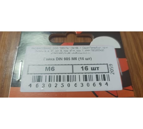 Отзывы о гайке ЖЕСТЬ DIN 985, М6, 16 шт., европодвес УТ-00002059