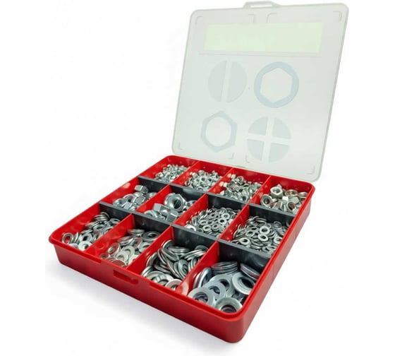 Гайки 23 Болта оц DIN934+шайбы оц DIN125 М4-М12 в органайзере набор 1 20000071