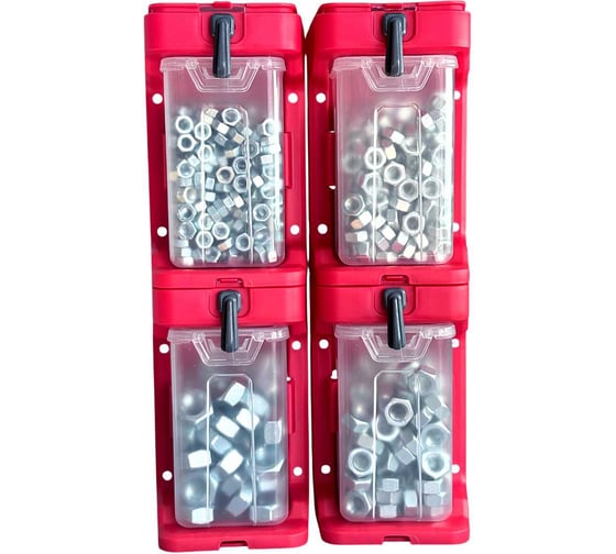 Шестигранная гайка DIN 934 из оцинкованной стали (ОЦ) имеет несколько преимуществ: Шестигранная форма обеспечивает лёгкость монтажа и демонтажа с помощью стандартного гаечного ключа. Метрическая резьба сохраняет усилие затяжки для безопасной эксплуатации монтажного узла. Защитный слой цинка равномерно покрывает поверхность гайки, включая резьбу, обеспечивая сохранность изделия от коррозии. Соответствие конструкции и размеров нормам и требованиям стандарта DIN 934, что гарантирует высокое качество механических соединений резьбового типа. Подвесной модульный контейнер — это эффективная система для организации и хранения крепежа, инструментов и мелких деталей в мастерской, гараже или на производстве. Разработанный для экономии пространства и поддержания идеального порядка, этот органайзер сочетает в себе продуманную конструкцию, надежность и возможность создания индивидуальных конфигураций хранения. Эффективная экономия пространства: Подвесная конструкция позволяет закрепить контейнер на стене, стеллаже или специальной панели, освобождая ценную рабочую поверхность столов и полок. Это решение идеально для компактных помещений. Полный контроль и быстрый доступ: Прозрачный корпус обеспечивает мгновенный визуальный обзор содержимого. Вы можете сразу увидеть, где хранятся гайки, болты, шурупы или другие метизы, не выдвигая каждый лоток. Контейнер оснащен плотно закрывающейся крышкой и фиксатором, которые предотвращают случайное высыпание содержимого при наклоне или транспортировке.