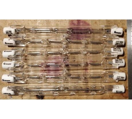 Брал 6 шт. ламп по 500 ватт для нагревателя Наконечники приклеены косо. Лампы разной длины :( Надеюсь поработают :| В общем качество соответствует цене. :D