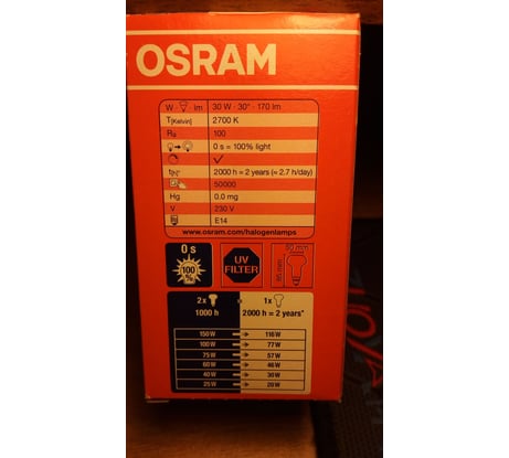 Вопросы и ответы о галогенной лампе Osram спот R50, CLA, 30W, 230V, E14, 20X1 64542 4008321212115