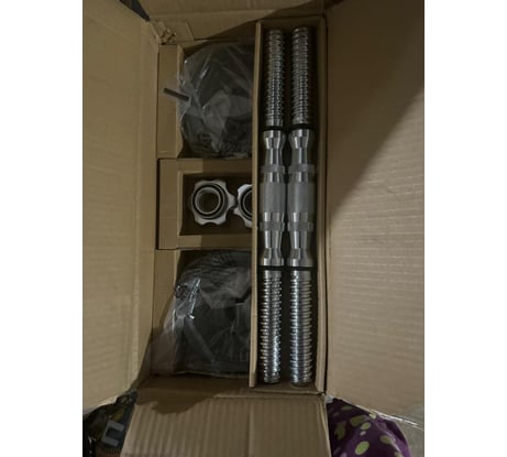 - Гриф - 2 шт., диск 1,25 кг - 8 шт, диск 0,5 кг - 4 шт., гайка - 4 шт