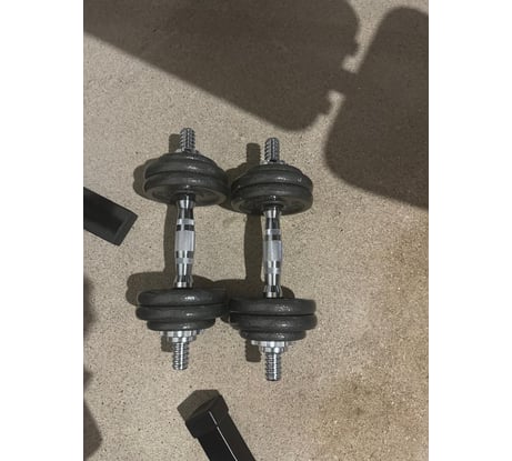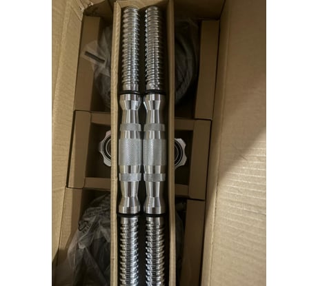 В набор спортинвентаря входят 2 гантели из чугуна по 7,5 кг. Два грифа из хромированной стали, которые служат основой для сборки гантелей, а также чугунные блины, которые позволяют регулировать вес и подбирать оптимальную нагрузку для рук во время упражнений. Уникальная конструкция резинового уплотнительного кольца предотвращает расшатывание и смещение блинов во время занятия спортом.