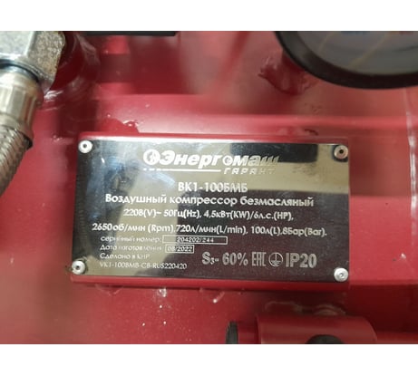 Безмасляный компрессор Энергомаш ГАРАНТ ВК1-100БМБ