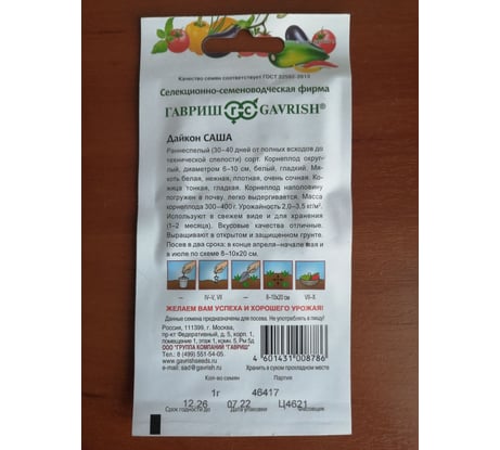 Раннеспелый (35-45 дней от полных всходов до технической спелости корнеплодов) сорт. Корнеплод длиной 5-9 см, округлый и овально-округлый, белый, гладкий, со светло-зеленой, выпуклой нежной головкой до 1/3 длины. При резких колебаниях влажности и температуры возможно утолщение нижней части корнеплода и появления грушевидной формы. Мякоть белая, нежная, плотная, очень сочная. Кожица тонкая, гладкая, кончик тупой. Корнеплод наполовину погружен в почву, легко выдергивается. Масса корнеплода 100-400 г. Вкусовые качества отличные. Выращивается в открытом и защищенном грунте. Посев в два срока: в конце апреля – начале мая и в июле по схеме 8-10 х 20 см. Урожайность 1,5-3,5 кг/м2. Используется в свежем виде и для хранения (1-2 месяца)