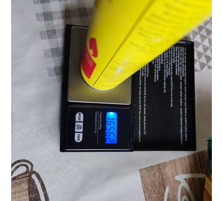 Масса нетто 110 грамм. С баллончиком 165гр. На ощупь баллон полупустой. Но вес совпадает. За 85 рублей нормально. Еще есть переходники. 5 штук.