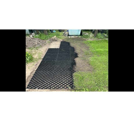 В мае-июне уложил. В этом году лето дождливое, земля под колёсами быстро прокатывается в колею. А у меня на стоянке решетка держит грунт, площадка остаётся ровной. Ходить ногами тоже хорошо: не проваливаешься в грязь, не паскаешь обувь!