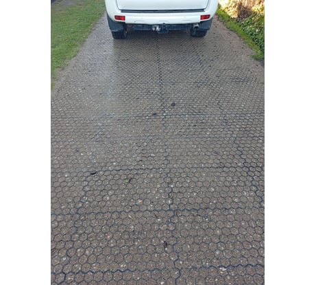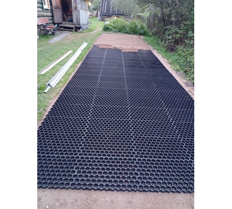Покупалось для финального слоя заезда на участок. Основание - трамбованный щебень 5-20. Толщина решëтки 32мм, 8 шипов по 23 мм. Укладка не сложная. Решëтка заполнена гранитной щебëнкой 5-20.