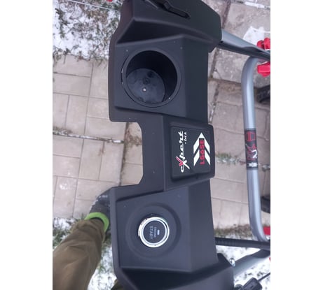 хорошая ширина скашивания. электростартер естественно - самоход. есть липучки для фиксации рукоятки работы двигателя. подстаканник. открытый стакан в нем расплескается, но бутылочка с водой очень уместна.
