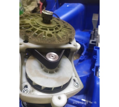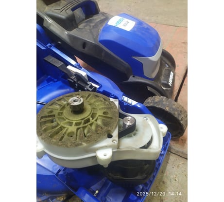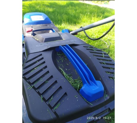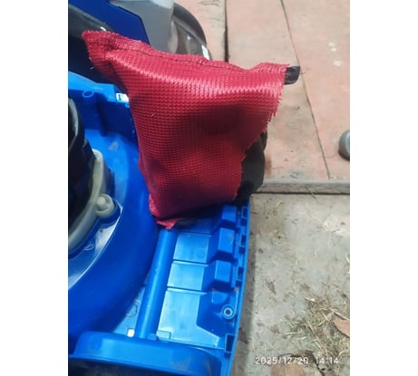 Ну, поехали )) : - ручка для переноски на верхней крышке не понятно зачем - неотцентрированная ни в каком виде, ни в разложенном состоянии, ни в сложенном - переносить не удобно; - кнопка включения двусторонняя - казалось бы должно быть удобней, но пружина на столько сильная, что через полчаса начинают болеть руки, о том чтобы косила жена - даже не помышляю и сама реализация хреновенькая - чуть приотпустил - сразу останавливается; - крепление травосборника не смотря на простоту не доставляет удобства в работе - постоянно приходится целится, благо объем приличный снимаешь не так часто; - тут же вытекает следующий недостаток - травосборник спроектирован с узким горлышком в косилке и расширением к задней части, поэтому при опорожнении трава сама по себе не высыпается из него - приходится усердно ее оттуда выталкивать; - флажок-указатель заполненности травосборника живет своей жизнью - фактически адекватно работал только в самый первый запуск, дальше показывает хаотично; - благо зазоры в верхней части крепления таковы, что когда бункер заполняется - просто начинает выплевывать скошенную траву через верх на ноги и понимаешь, что уже пора опорожнять корзинку; - дополнительным механизмом указания заполненности служит сама не сбалансированная система, как видно на фото разобранного механизма в передней части лежит мешочек с противовесом, но смысл в том, что он слишком мал и когда корзинка заполняется вся конструкция стремится козлить, на фото тоже хорошо видно; - при разборке и смазке выяснилось, что верхний подшипник смазан нормально, а нижний просто полежал рядом с банкой с литолом - за такие деньги хотелось плавный пуск уже с завода, а так пришлось самостоятельно доустанавливать его.
