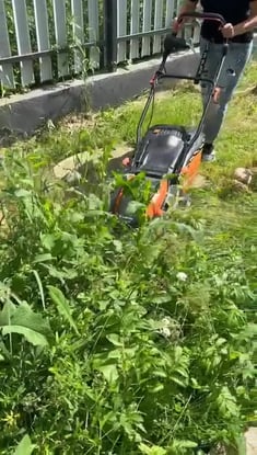Газонокосилка просто супер! Ходишь себе типа на свежем воздухе на прогулке и одной рукой держишь газонокосилку, а трава типа сама по себе косится.