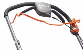 - Ручное устройство безопасности мгновенно останавливает нож, если оператор теряет контроль над газонокосилкой;