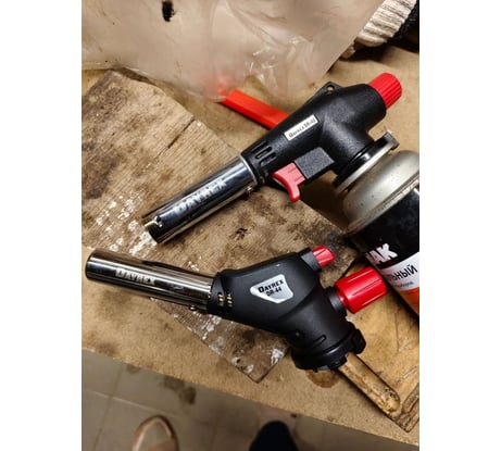 Выглядит шикарно, газ зажигает с 1-го раза (для тестов был газовый баллон примерно 16 года выпуска), поработал на даче ею - повертел в разных положениях, ну очень мощная струя пламени.