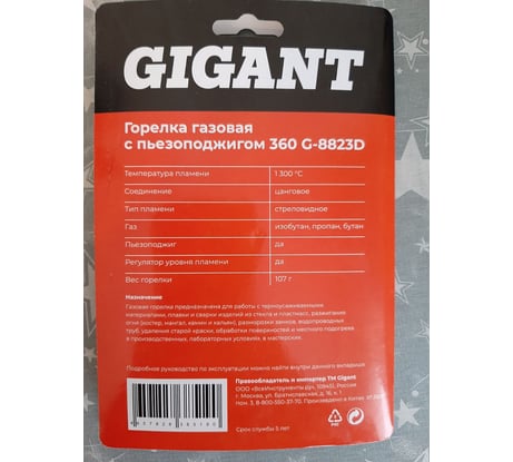 Отзывы о газовой горелке Gigant с пьезоподжигом 360 G-8823D