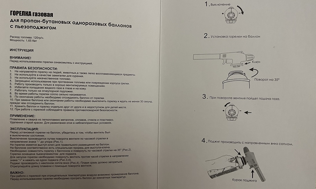Материал горелки:пластик, металл