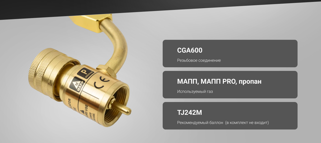 Самая мощная профессиональная газовая горелка на МАПП-газе из всего ассортимента с тепловой мощностью 6,5 кВт.
