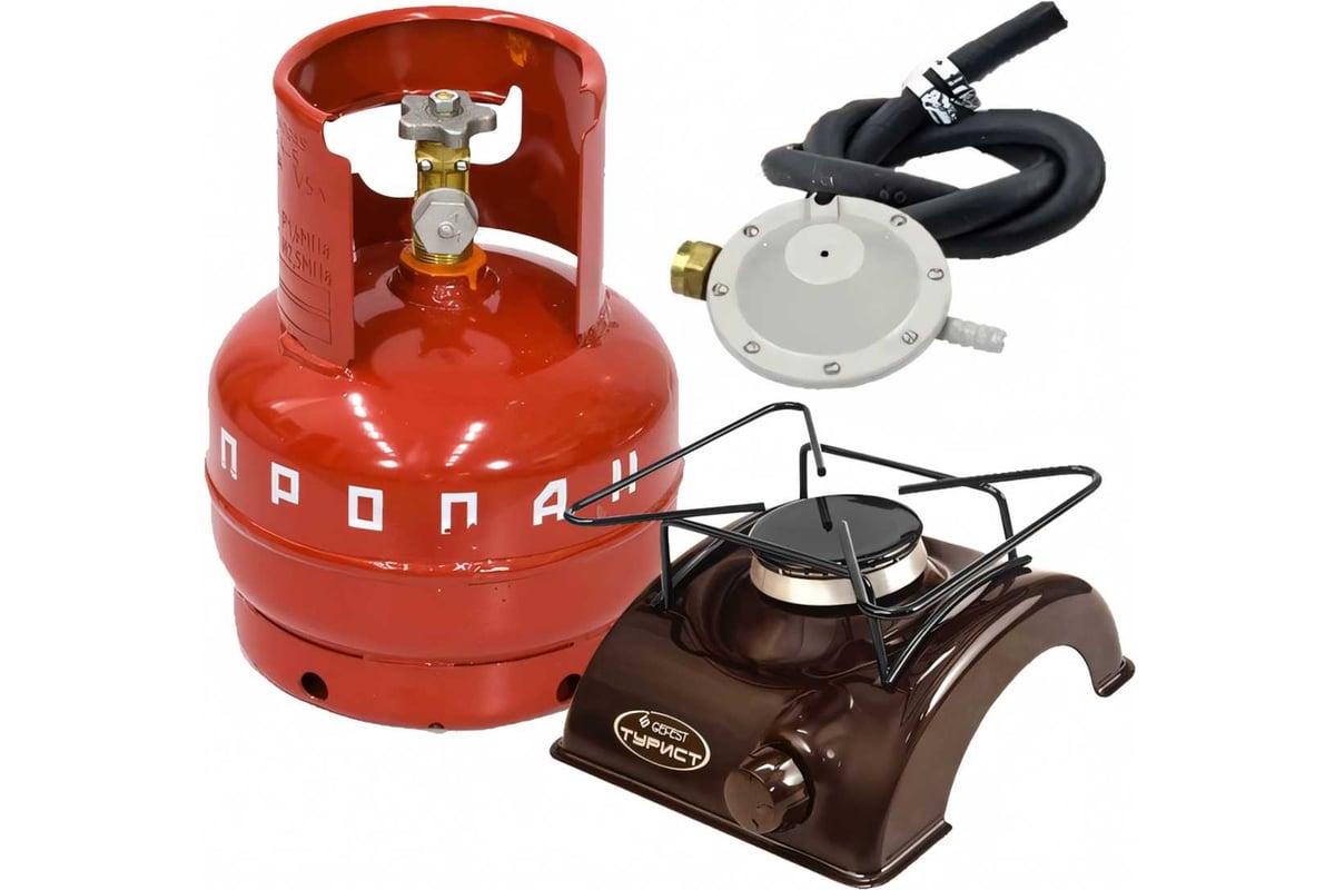 - Полная комплектация Включает баллон, редуктор, шланг, хомуты