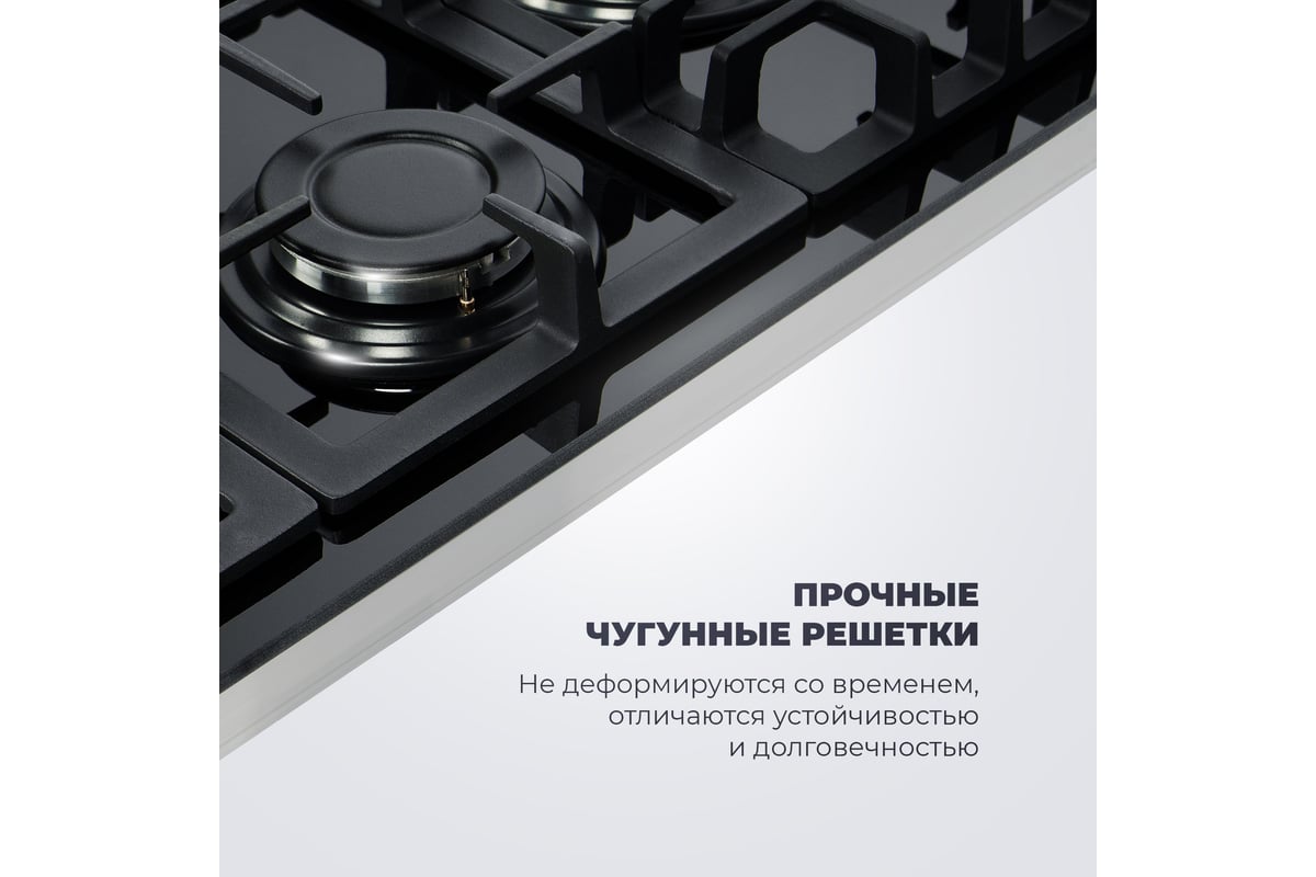 Автоматический розжиг - включайте конфорку одним поворотом переключателя без использования дополнительных приспособлений.