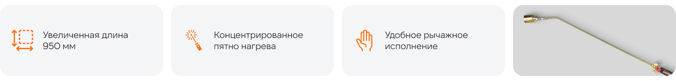 - Отличительной особенностью газовоздушной горелки REDIUS ГВ-111-Р рычаг, L=950 мм 08202 является концентрированное пятно нагрева;