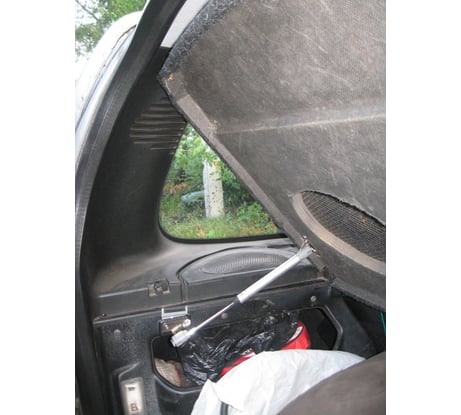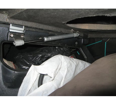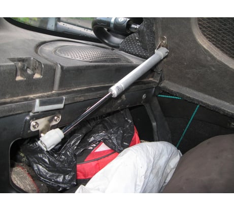 Задняя полка жёстко держится и в нижнем и в верхнем положении. Для поднятия достаточно немного потянуть полку вверх, дальше она поднимается сама. Если полку надо будет снять, то газовые упоры отстёгиваются от кронштейнов.
