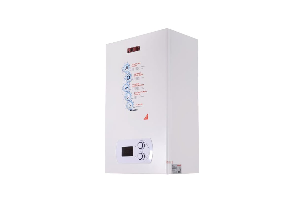 Газовый котел данной модели отличается компактными размерами, поэтому не возникает сложностей с установкой. Вес агрегата составляет 29,96 кг. Предусмотрено несколько режимов работы, что позволяет выбрать оптимальный вариант с рациональным расходом топлива. Медные патрубки отличаются надежностью, способны служить долгое время без потери свойств. Имеется многоуровневая система защиты, которая гарантирует безопасность эксплуатации котла. Модель ГК-11 Ресанта подходит для домов постоянного и временного проживания, так как оснащена защитой от промерзания – автоматически включается при снижении температуры теплоносителя до минимального значения.