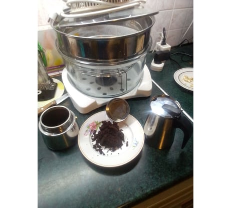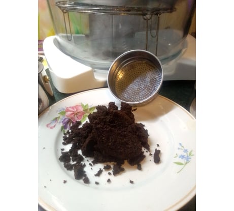 Большой(огромный расход кофе), не перерабатывает кофе полностью(ради интеринтереса заправил в кофеварку Delоnghi "отработку" и получил кофе уровня растворимый только более ароматный), большой остаток воды в нижнем отсеке.
