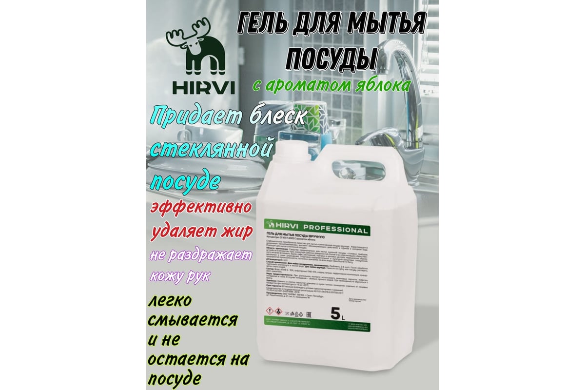Гель для мытья посуды HIRVI с ароматом яблока, 5 л 329а923