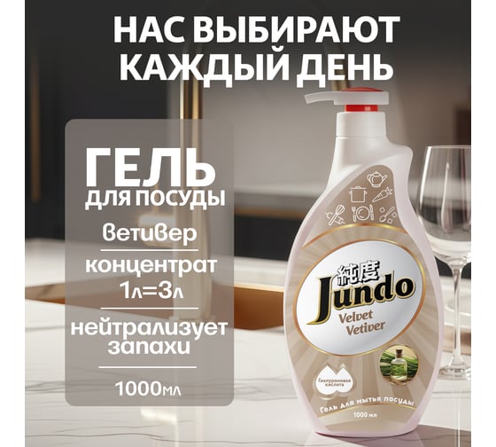 Гель для мытья посуды Jundo Velvet vetiver с дозатором, 1 л 4903720020333- концентрированный гель с гиалуроновой кислотой для мытья посуды с ароматом бархатного ветивера эффективно и быстро очищает посуду, расщепляет жиры, устраняет неприятные запахи.