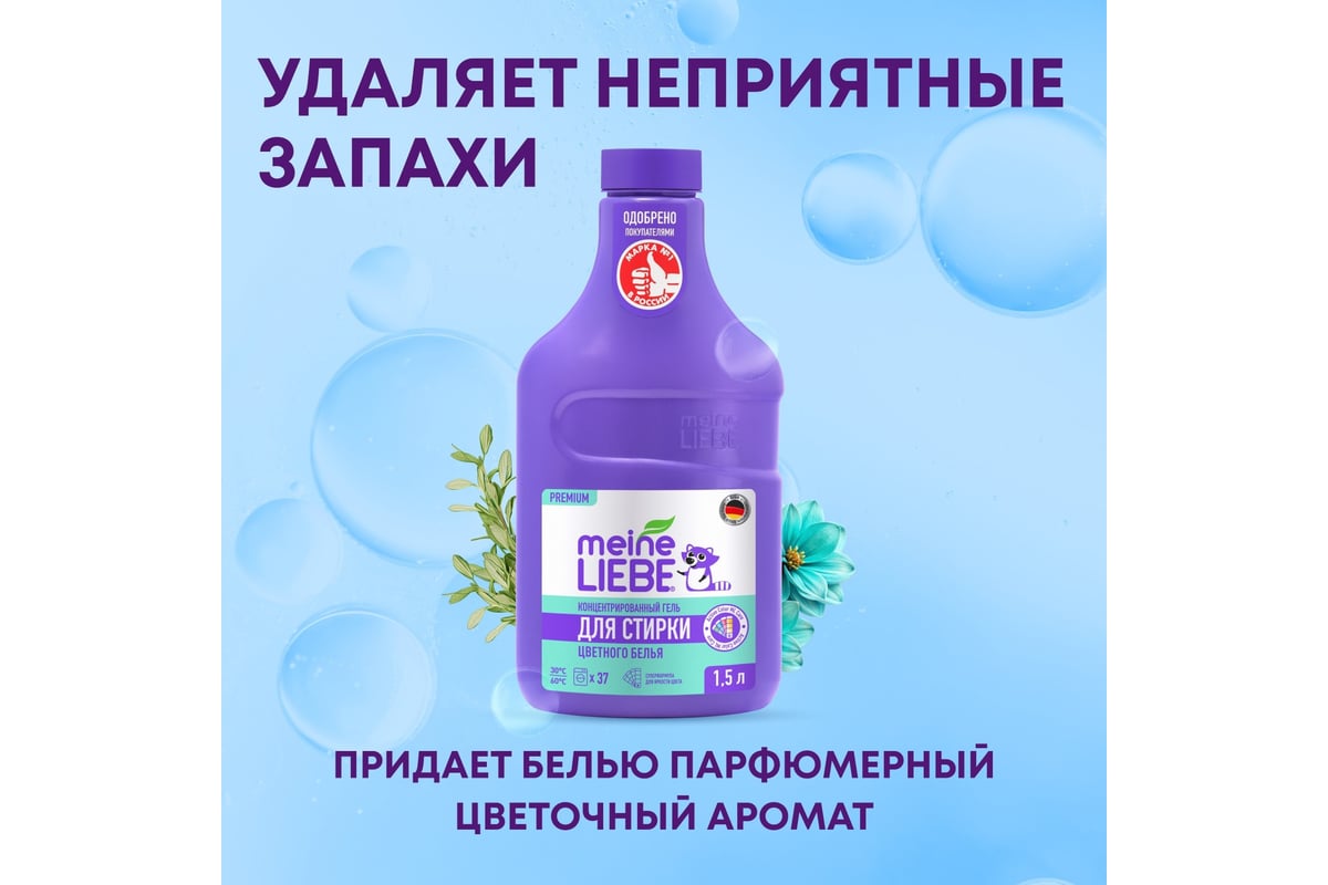 Гель для стирки Meine Liebe подходит для изделий из цветных синтетических, хлопчатобумажных и льняных тканей, а также тканей из смешанных волокон. Эффективен даже в прохладной воде и на коротких циклах стирки. Полностью выполаскивается и не оставляет разводов.
