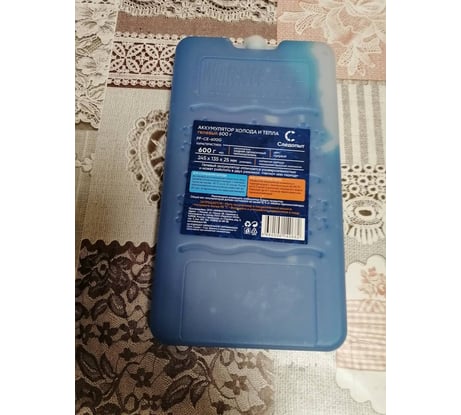 плоский, что позволяет удобно разместить в сумке совместно с продуктами. Из-за размеров также будет удобно оставить в морозилке на даче на случай отключения электричества и "съедать" по минимум место в морозилке.