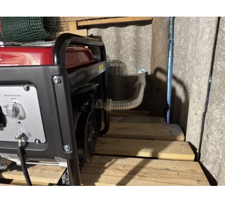 Отличный генератор. На нем установлено 2 розетки. В комплекте идут 2 вилки под провод 2,5 квадрата, воронка, ключи. Мотор на подушках, вибрации нет. Шумноват(не критично). Котел Baxi eco four 24 запускается без ошибок, как на прямую, так и через инверторный стабилизатор штиль is350. Отдельно приобрел систему отвода выхлопных газов. Диаметр посадочного места под адаптер на глушителе 28 мм.