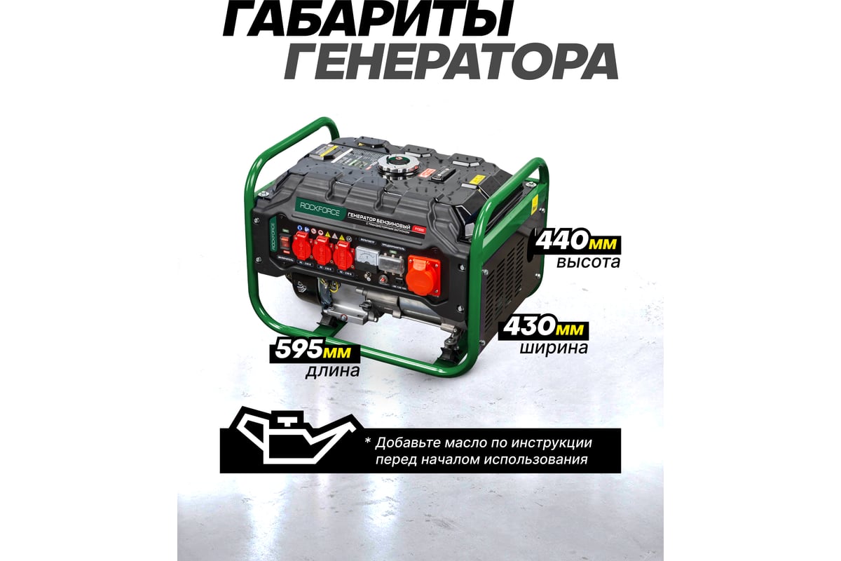 Электрогенератор бензиновый от бренда Rockforce - компактный переносной источник питания переменного тока, разработанный для автономного энергоснабжения бытовой техники, различных электроприборов и инструментов.