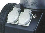 Защищенные выходы Две розетки на 230В/16 А закрыты крышками для защиты. |