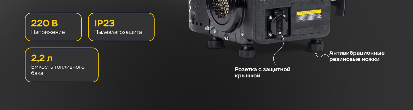 Компактный как небольшой чемодан. Инвертор дает чистое питание для техники. Тихий - можно спать рядом.