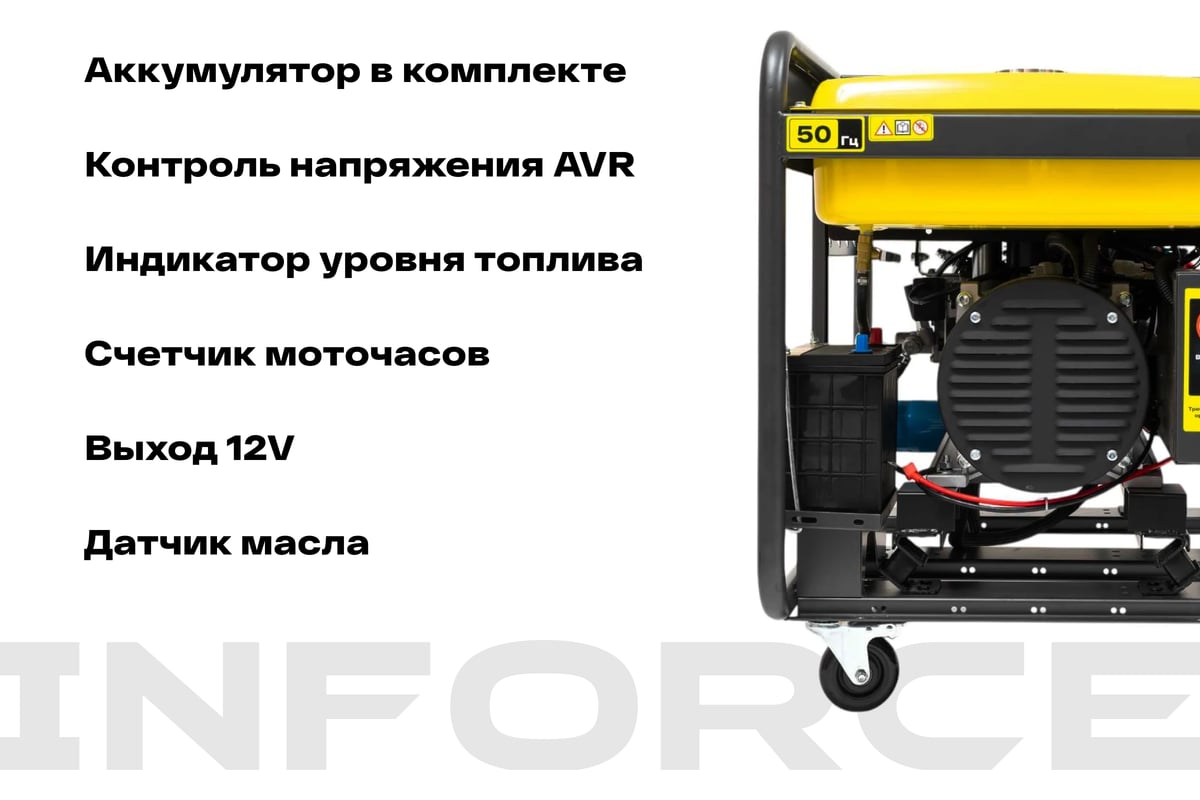 - Топливный бак на 25 л и система контроля оборотов Обеспечивают непрерывную работу генератора до 8 ч