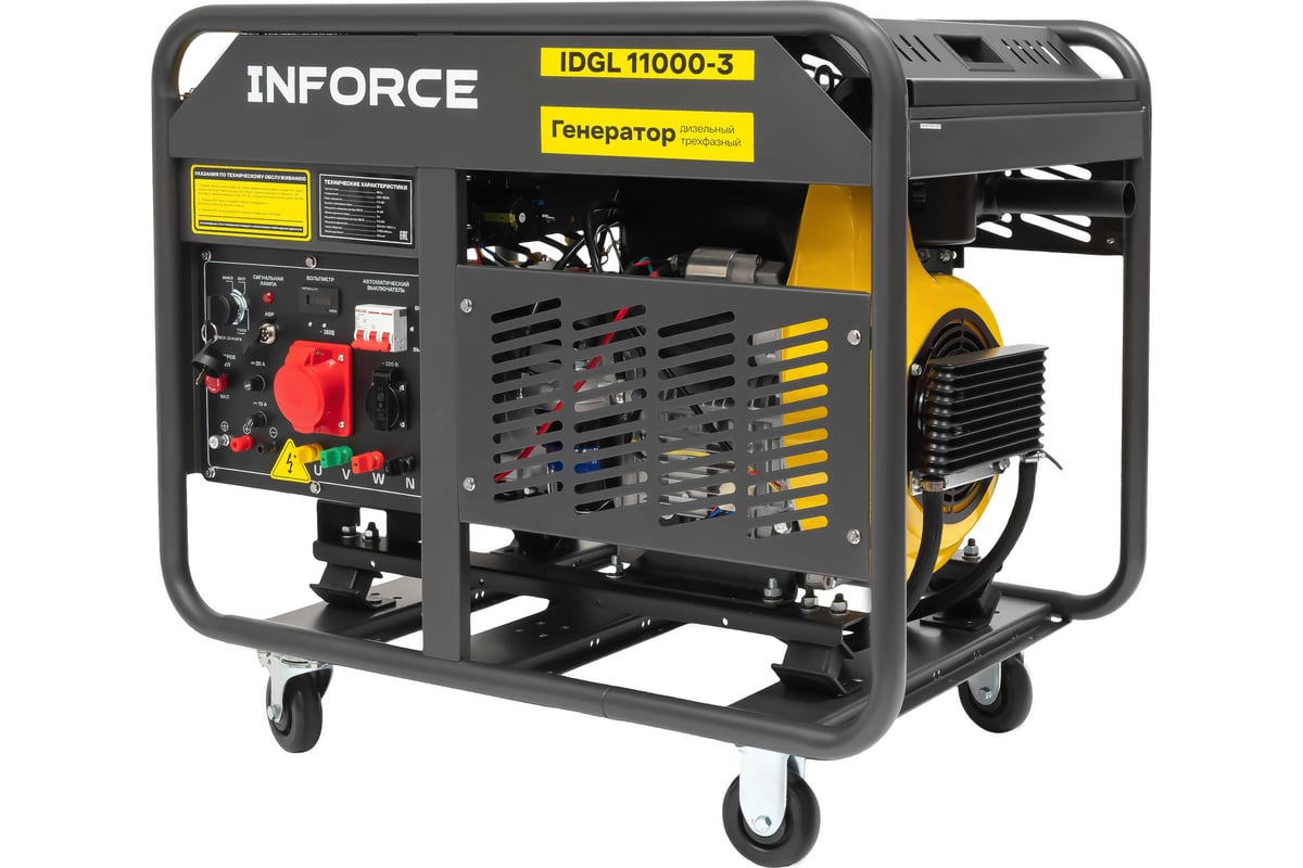 - Металлический кожух и комплект колес Служат для защиты и простого перемещения генератора