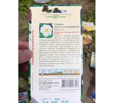 Георгина Лен ГАВРИШта серебряная 0.2 г 10006460