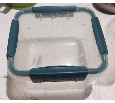 В крышке контейнер "Butterfly" имеет впаянный уплотнитель на основе полипропилена, предотвращающий попадание загрязнений и бактерий под внутреннюю сторону крышки.