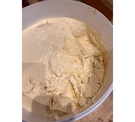 Очень густой, консистенция с комками. Растрескивается сразу после нанесения. Откровенный брак.
