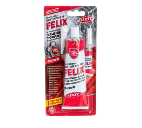 Герметик-прокладка FELIX (силиконовый; красный; 85 г) 411040057 применяется в условиях высоких температур или в сильно нагруженных соединениях, при проведении ремонта узлов и агрегатов трансмиссии и двигателя, при установке и ремонте впускных и выпускных коллекторов, выхлопных труб, водяной помпы, корпуса термостата, бензонасоса, крышек картера, дифференциала, коробки передач, карбюратора. Идеально подходит для устранения течи воды, антифриза и масла в разъемных соединениях (в картере, коробке передач, заднем мосте и т.п.), зазоров в строительных конструкциях.