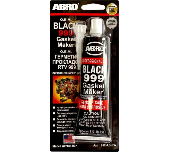 Герметик прокладок силиконовый ABRO 999, черный, 85 г, 912-AB-RW
