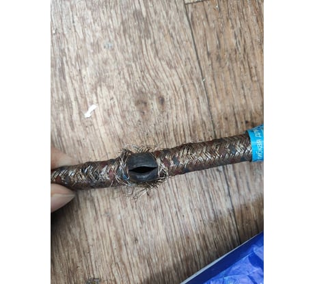 Стояла эта подводка к бачку унитаза. Простояла 2 или 3 года и в один прекрасный момент лопнула тогда, когда дома никого не было. Затопило квартиры аж на 2 этажа ниже. Оплётка шланга превратилась в труху. Сам он был установлен правильно - без заломов, перегибов и натяжения На этикетке написано 7 лет гарантии...