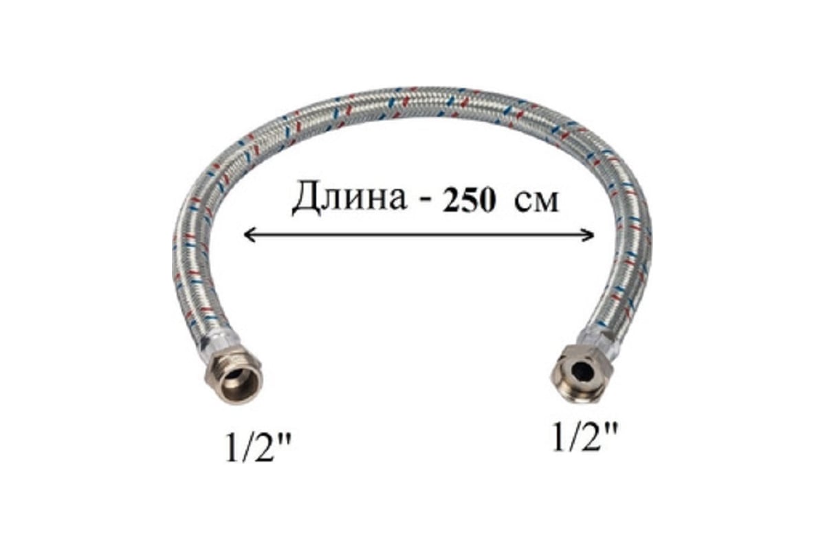 - Гибкая подводка для воды 1/2 гайка-штуцер 250 см - 1 шт.
