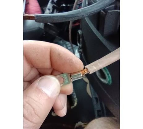 Внешнюю изоляцию пришлось снять, сошла легко. Обнаружилось при обжатии, провод уже проложен