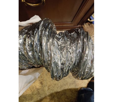 Мягкий мятый воздуховод. Вместо заявленной металлической пленки какой- то очень мягкий целлофан с блестящим покрытием.