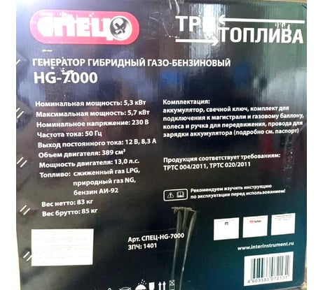 Гибридный генератор газ-бензин СПЕЦ-HG-7000 и комплект для подключения к сети+баллону На страницу товара69 000 ₽