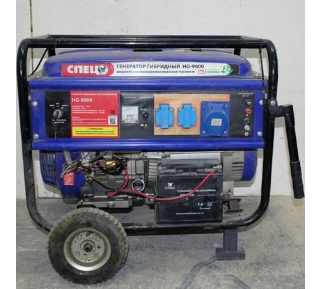 Гибридный генератор газ-бензин СПЕЦ HG-9000и комплект для подключения к сети+баллону предназначается для снабжения бытовых приборов качественным электричеством. Предусматривается розетка на 32 А для подключения высокомощного строительного оборудования. В качестве топлива используется не только бензин АИ-92 и сжиженный газ в баллонах (пропан-бутан), но и магистральный газ (метан). Все элементы генератора крепятся на жесткую металлический раму, которая имеет ручки и колеса для удобство перемещения по рабочей площадке.