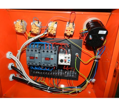 Электроподключение осуществляется через пятиконтактный разъем. На станке установлено тепловое реле для защиты мотора.Управление станком в ручном режиме производится с помощью кнопок включения зеленого и красного цвета на передней панели (они запускают вращение планшайбы в противоположных направлениях), а в автоматическом режиме с помощью педали