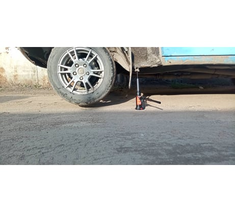 Неплохой домкрат в замен штатного или ромбового. Работает мягко, поднимает без усилий и также мягко срабатывает перепускной клапан. Можно брать смело. На фото не самый низкий автоиобиль. И тем не менее.