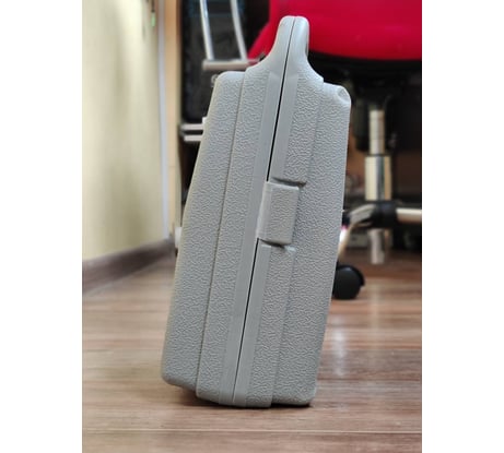 В моем случае кейс оказался с потрескавшимися внутренними отформовками (без ущерба функционалу), так что если это вам важно - внимательно смотрите на выдаче. Кейс может стоять вертикально, но неустойчиво и криво. Ручка выполнена не аккуратно, но другие на бутылочных домкратах мне и не попадались.